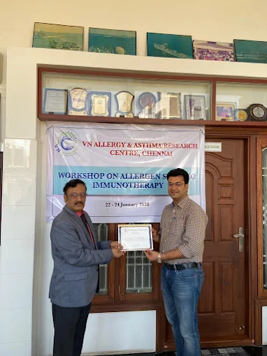 Dr. Mohit Poddar is internationally recognized prominent allergist and pediatric specialist dedicated to advancing the management of allergies across all age groups. With 15 years of extensive experience in Allergy, Asthma, and Clinical Immunology, he has been dedicated to allergy treatment, allergy tests and asthma management. He was awarded a Fellowship in Allergy, Asthma, and Clinical Immunology at Saveetha Medical College, Chennai under legendary Allergist late Prof Major Nagaraju better known as Father of Paediatric Allergy in India.